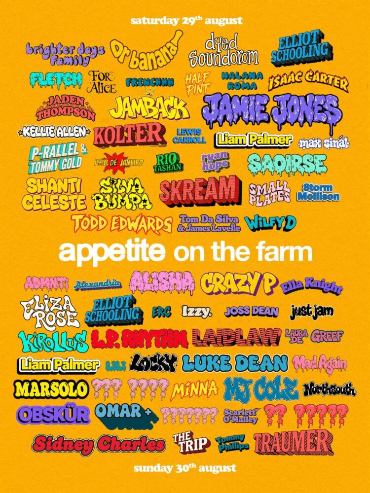 Since its founding in 2017, Appetite has developed from a London-based party into a wider platform with regular European bookings and its own record label. Appetite On The Farm, launched in 2022, has grown steadily while aiming to maintain the same community-led approach that shaped its early editions.