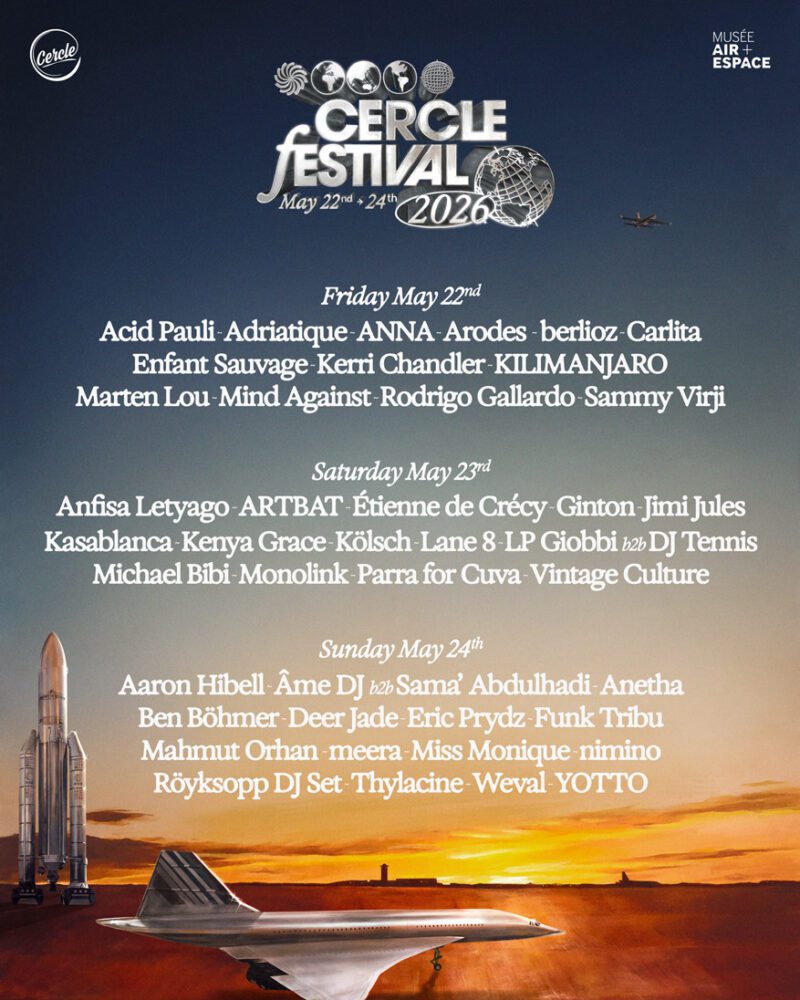 Cercle has announced the full lineup for its third festival edition, set to take place May 22–24, 2026, at the National Air and Space Museum of France in Le Bourget.