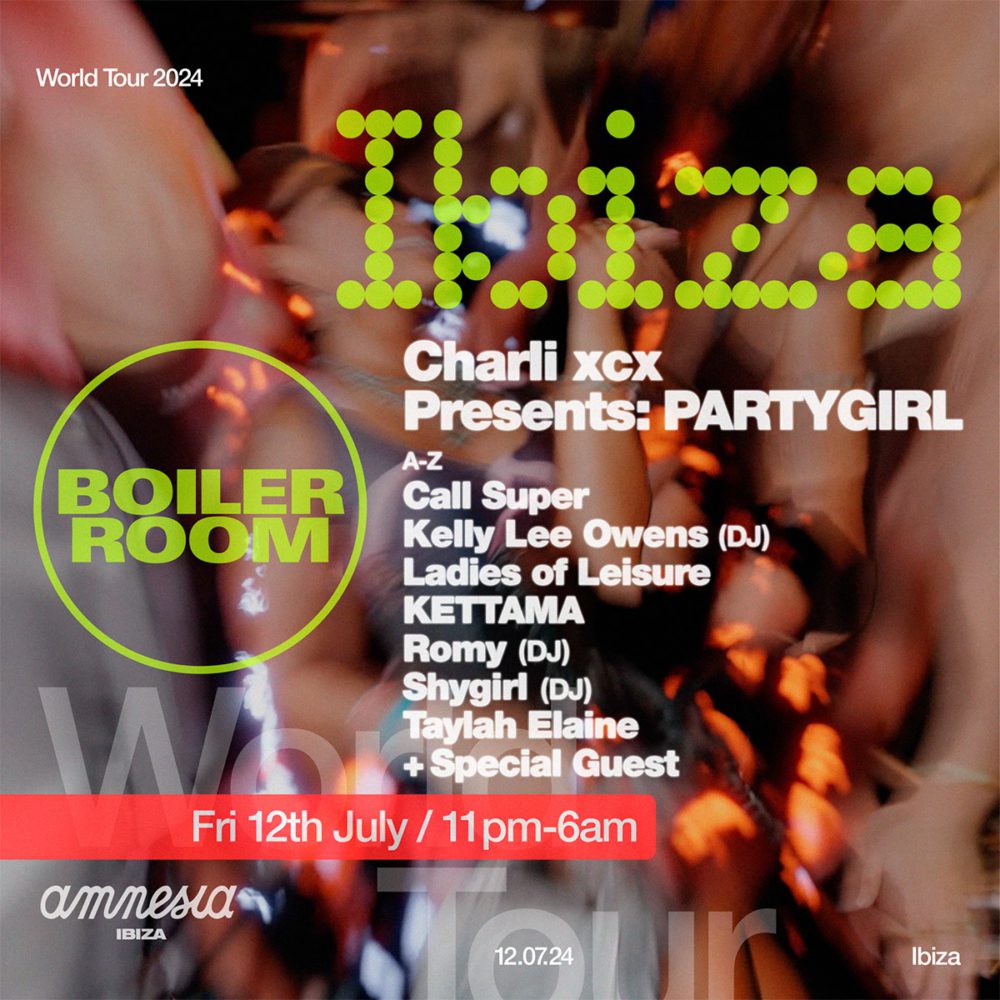 Boiler Room is set to return to Ibiza, continuing its world tour series. The return event is scheduled for July 12th, 2024 in partnership with Amnesia, and features Charli XCX’s ‘PARTYGIRL’ event.