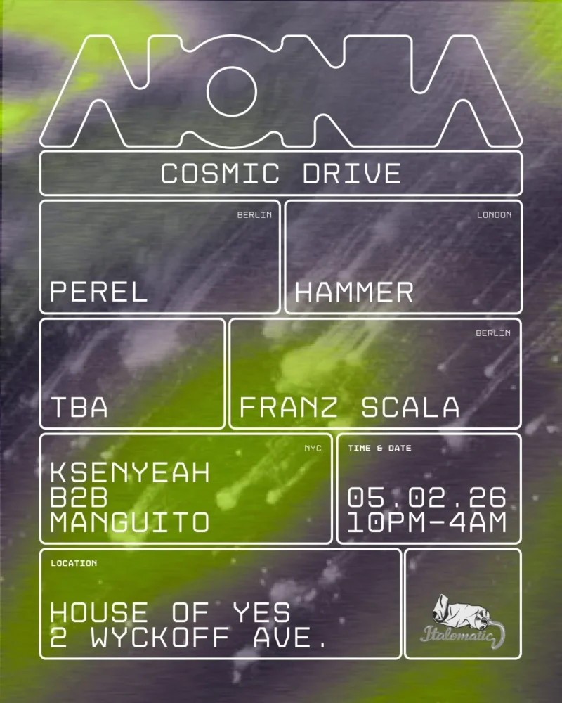 Cosmic Drive is set to take over House of Yes in Brooklyn on Saturday, May 2nd, 2026, bringing a night centered on cosmic house, Italo disco, and synth-led club music.