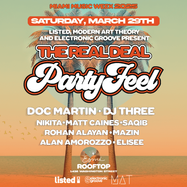 Hallucienda’s own DJ Three has been confirmed to play alongside Los Angeles’s legend Doc Martin at The Real Deal Party Feel, which will be taking place on Saturday, March 29th, 2025, from 4:00 PM, at the Esme Hotel Rooftop (1438 Washington Avenue, Miami Beach). The free rooftop gathering – hosted by Listed, Modern Art Theory, and Electronic Groove –aims to highlight the spirit of old-school dance music in Miami, bringing together a diverse roster of artists in a single day-into-night musical affair.