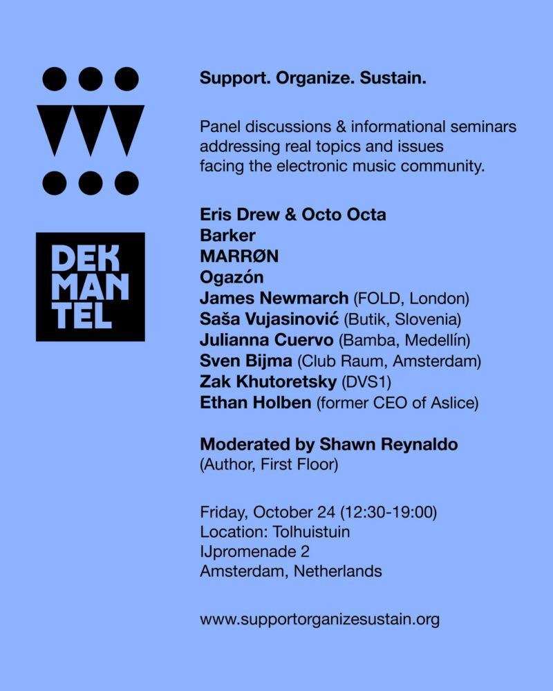 Support. Organize. Sustain (S.O.S.), the initiative founded by DVS1, returns on Friday, October 24th, 2025, with a free, one-day conference during Amsterdam Dance Event. Co-produced with Dekmantel and held at Tolhuistuin, the gathering will explore urgent issues facing the electronic music community.