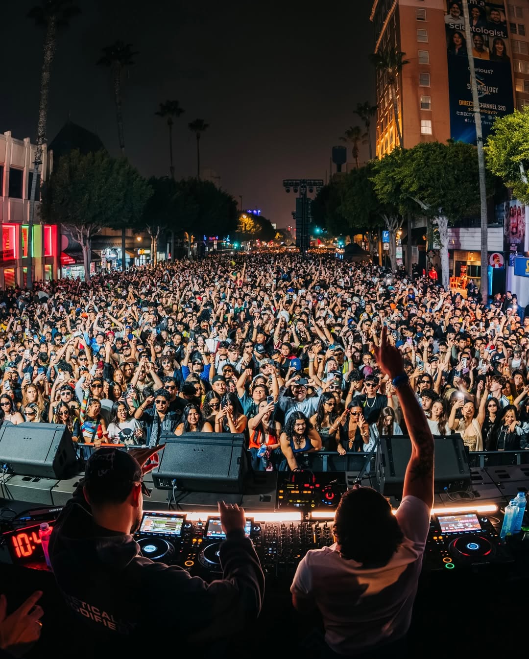Beltran followed, and as expected, he didn’t miss. His loyal following was easy to spot. Construction vests scattered throughout the crowd, a nod to a now-legendary Hard Summer moment in LA when Beltran brought a security guard onstage after learning the guard wanted to see his set but had to work. Instead of letting him miss out, Beltran invited him to hang with the crew and enjoy the moment. That same spirit carried over to Hollywood Boulevard, where Beltran even rocked matching In-N-Out hats with Mochakk onstage. These two guys.