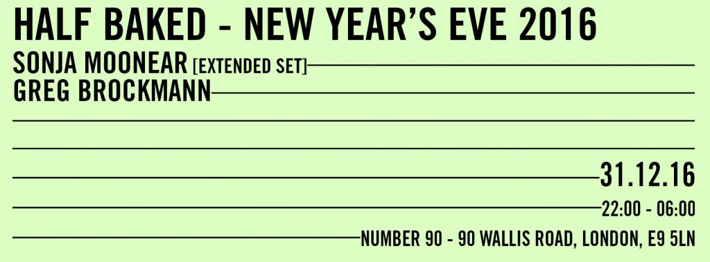 If you haven’t had the chance to check out Half Baked events yet, try their NYE events in their Hackney Wick home of Number 90 with Sonja Moonear, Seuil, Martinez, Robin Ordell, Le Loup and their wickedly talented residents Greg Brockmann, Sam Bangura and Harry McKanna.