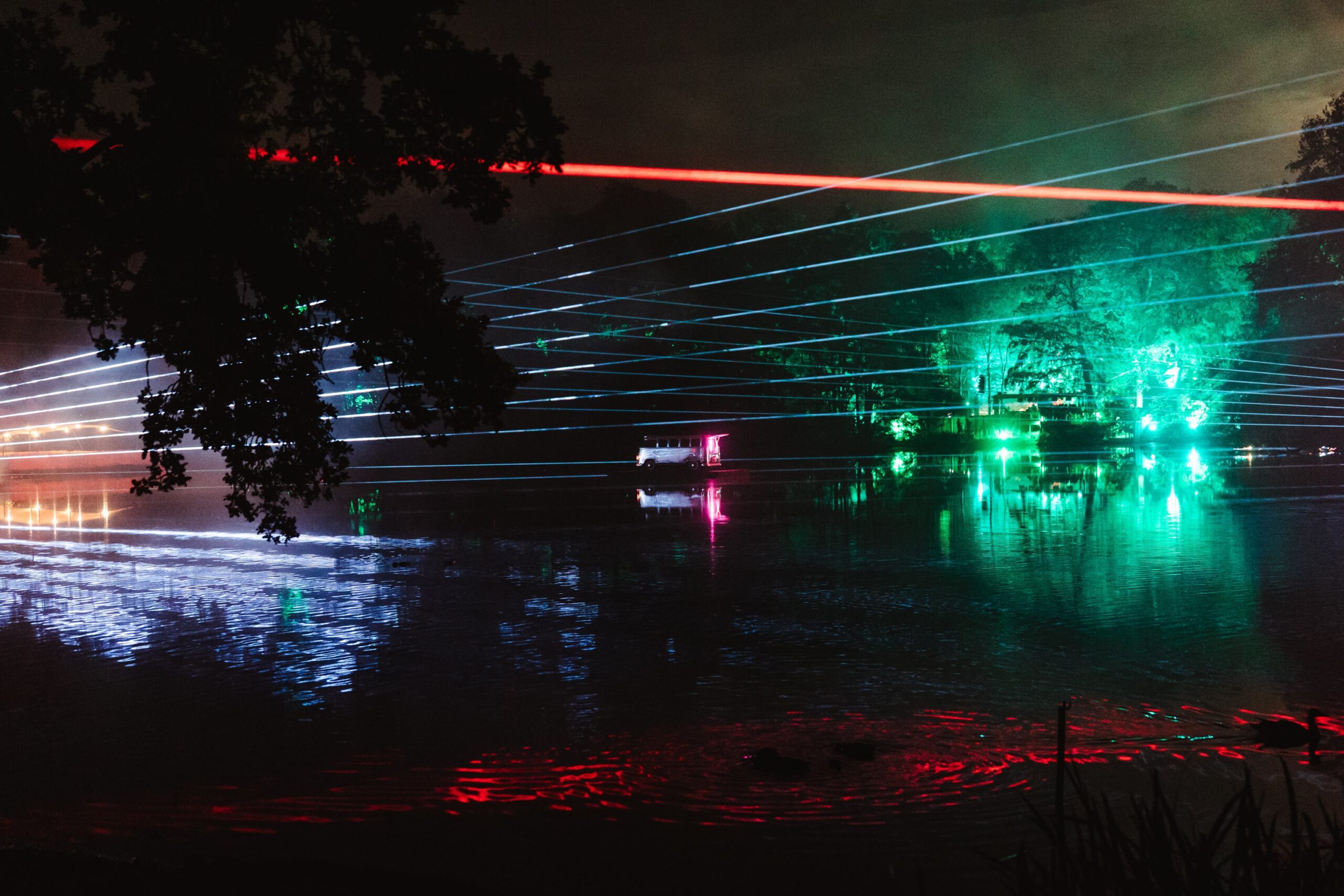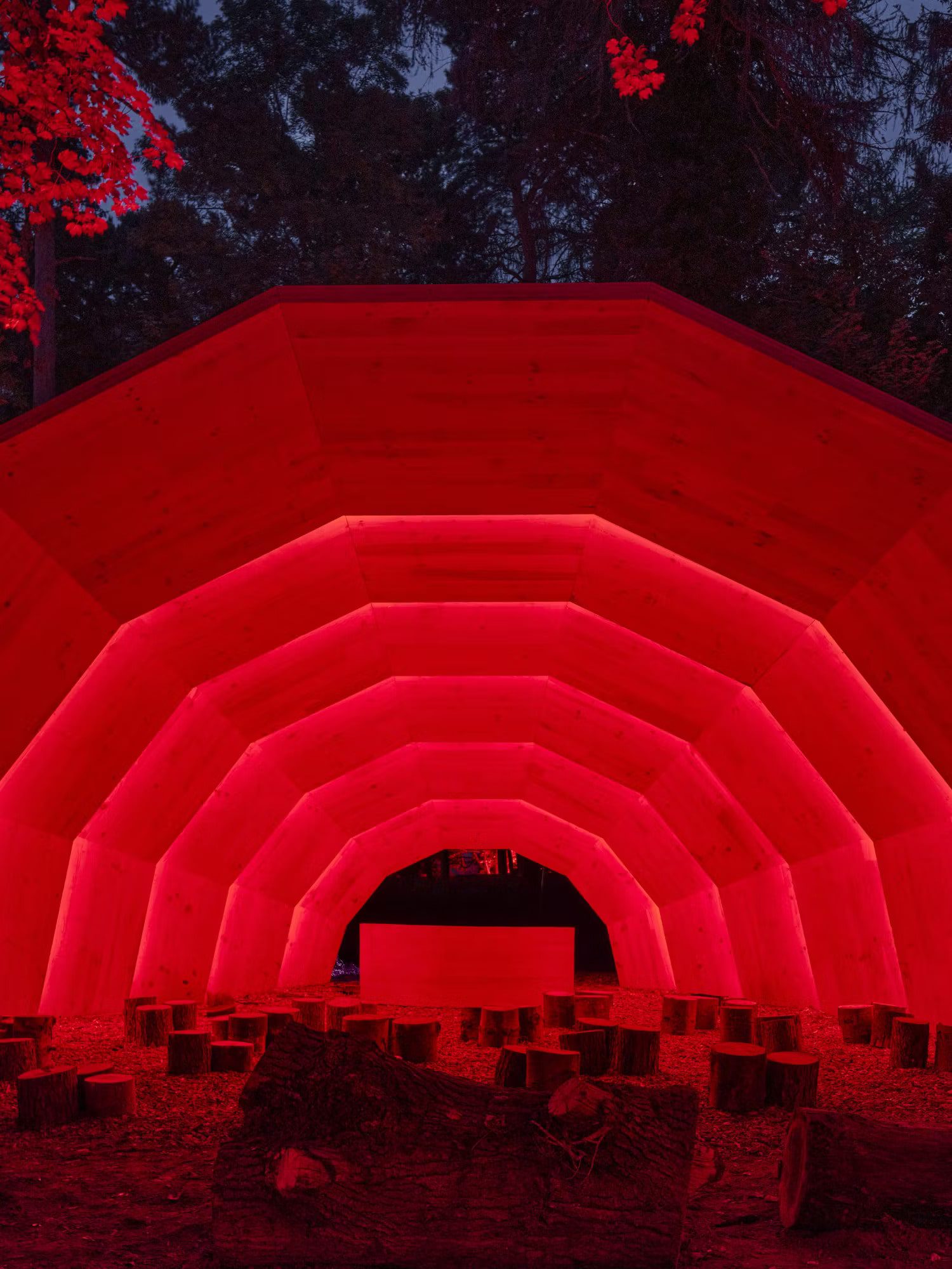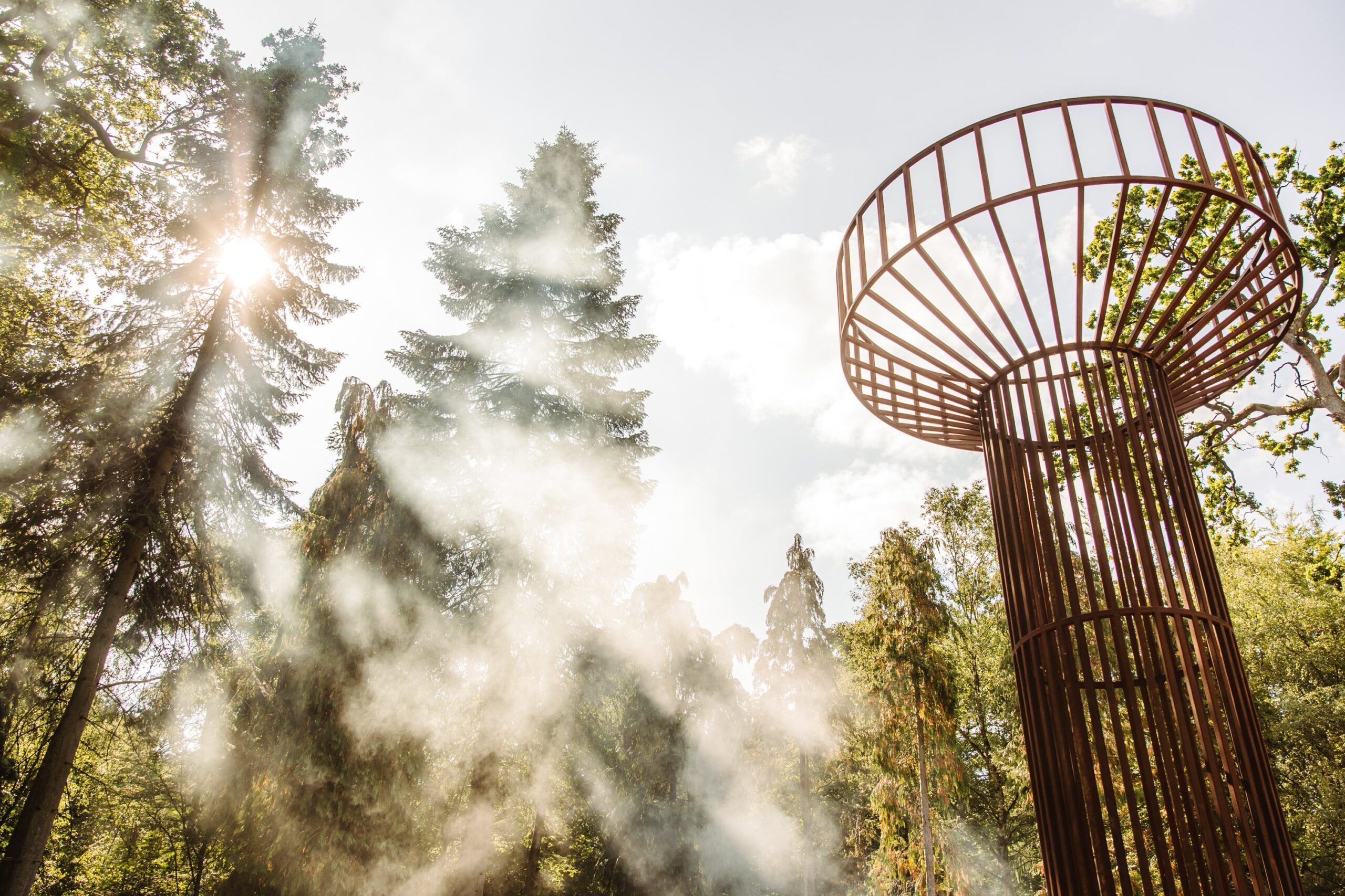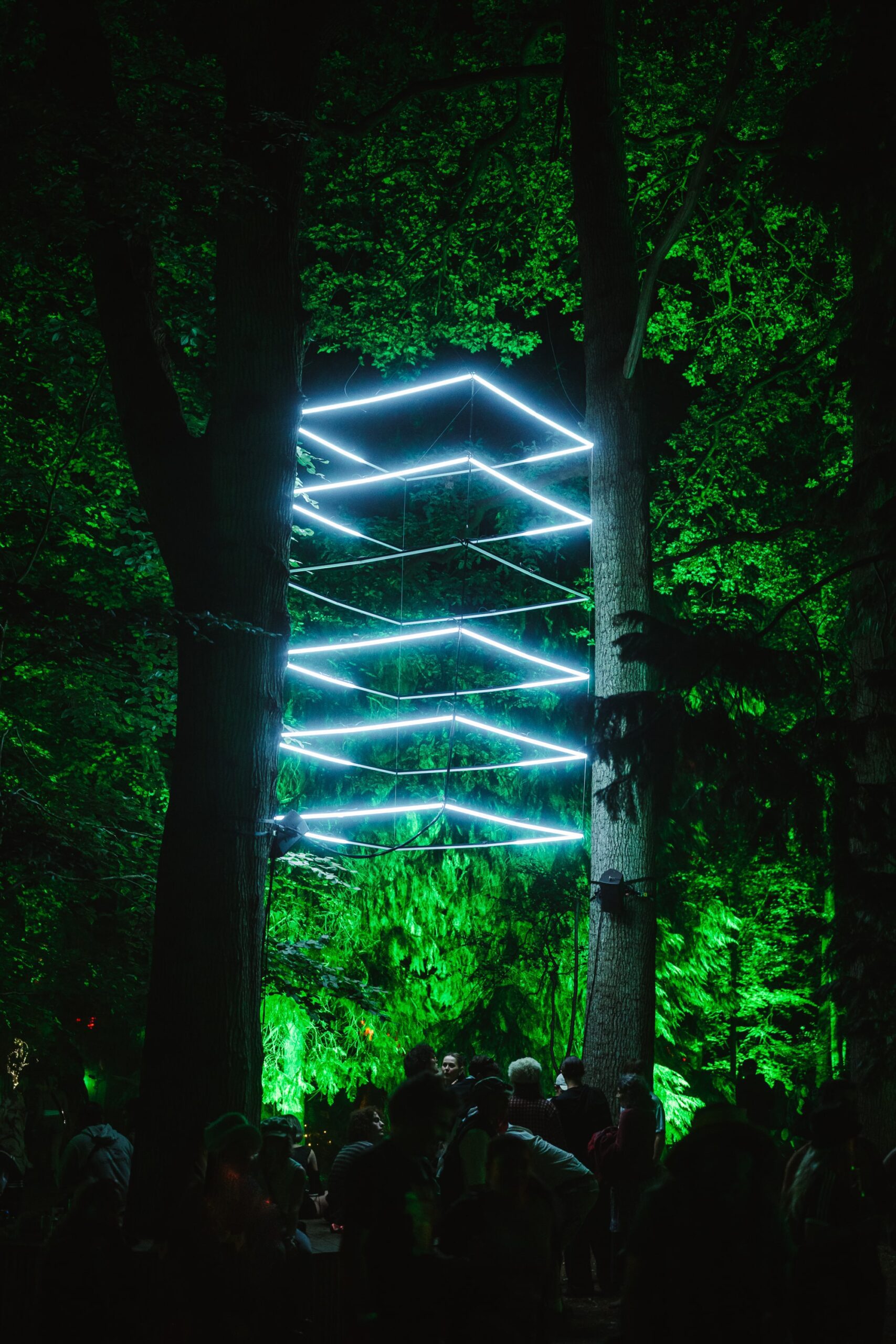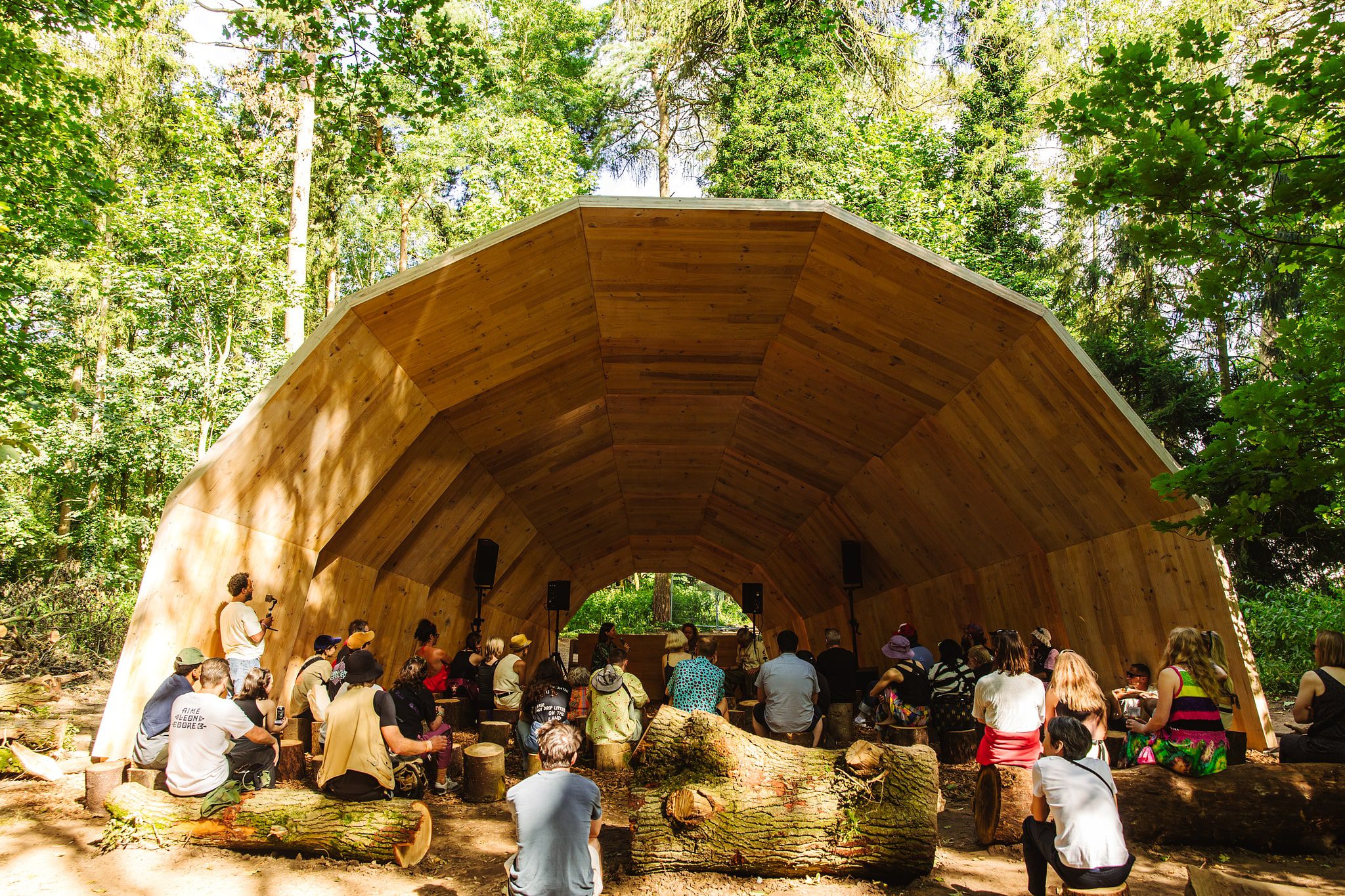 On the walk from the field back into the forest, I took a moment to really soak in the beauty of Houghton’s grounds. Few festivals can match them — sprawling lawns framed by towering trees, pockets of hidden stages, and incredible art installations scattered throughout. One standout was Pulse, an art commission from EBBA Studio led by Benni Allan, which created a serene space where festival-goers could pause, breathe, and watch the piece echo the rhythms of the forest around it.