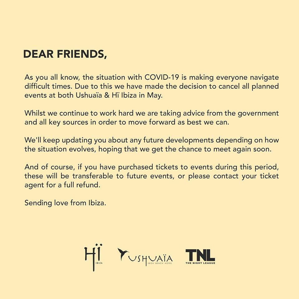 Read the statement from Ushuaïa and Hï Ibiza below: