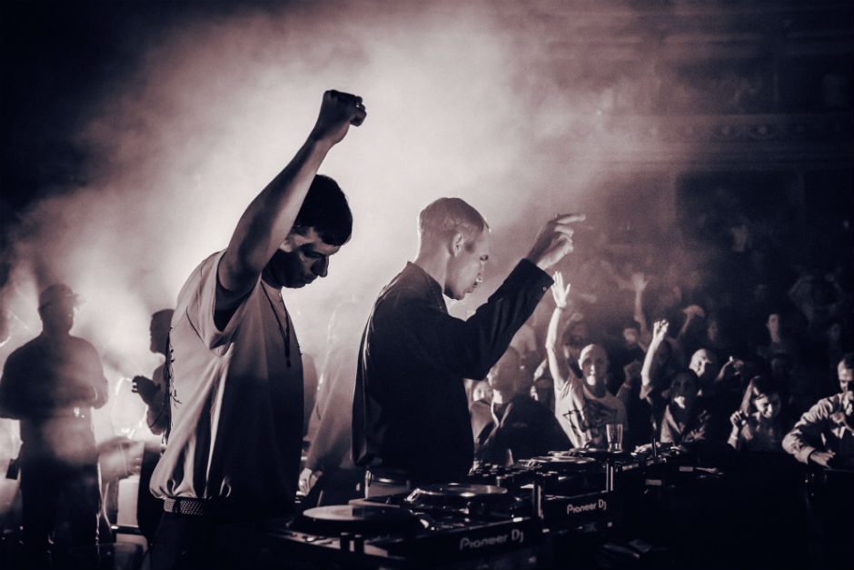 The DJ booth had been switched around and moved to floor height accompanied by a large rack of lights that had been placed closer towards the crowd. This created a space that seemed much smaller than reality, more of a club vibe. Their set was deep and perhaps less moody than what they would play in the club. The sound transpired well across the venue, with speakers set up throughout so all levels could hear well. The selection of music was a mixture of old and new, which helped the temperature pick up even more than it had before. This energized the crowd even more, giving them more power and stamina for the next venue they were playing in London that evening.