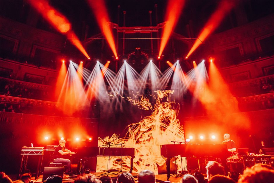 Although the venue was still surprisingly empty at this point, the next acts brought more energy into the room. Two grand pianos were wheeled on both sides of the stage whilst Henrik Schwarz and Bugge Wesseltoft got to their positions, calmly taking in the vast and majestic venue at the end of their noses. They played an hour of experimenting with synths and percussion, not structurally rhythmic per say, but the marriage of the electronic and classical set in such a terrain left the crowd wide-eyed and perhaps slightly bewildered.