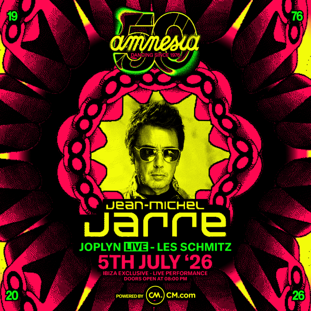 Known for large-scale concerts staged at landmarks including the Eiffel Tower and the Pyramids of Giza, Jarre’s Ibiza date will take place on Amnesia’s Terrace, offering a rare club setting for his live show.