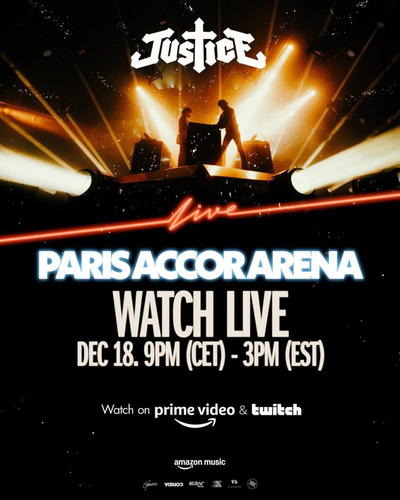 In collaboration with Amazon Music, French electronic duo Justice will livestream a sold-out performance from Paris’s Accor Arena, marking a triumphant end to their 2024 journey. The stream begins Wednesday, December 18th, at 9 PM CET on Twitch and Prime Video.