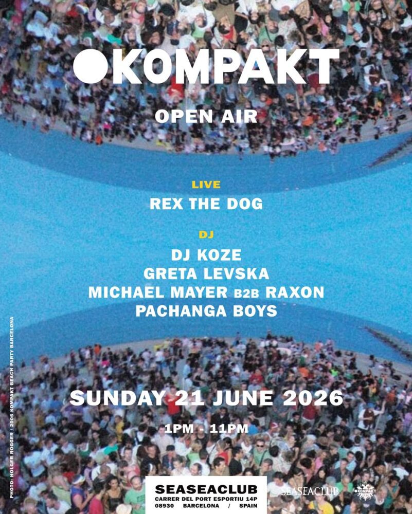 Kompakt has announced a new Open Air event in Barcelona, featuring DJ Koze alongside a full lineup of label affiliates and collaborators. The gathering is set to take place at Sea Club Barcelona on Sunday, June 21st, 2026.