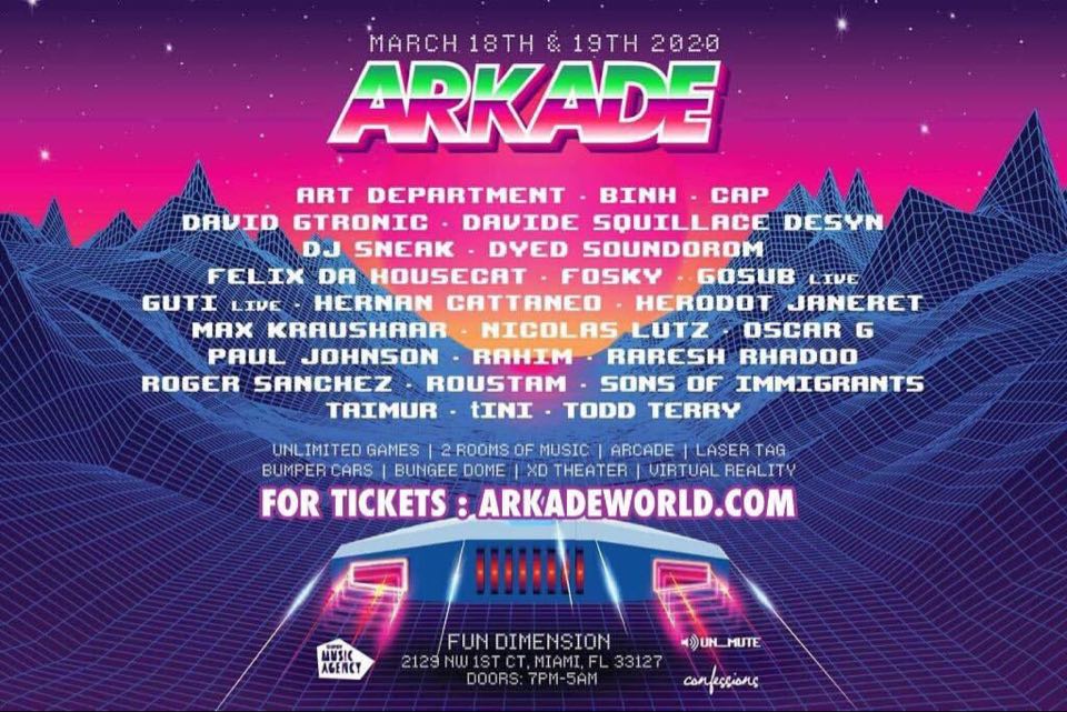 Miami-based collectives, Un_Mute and Confessions, have put together a special 2-day event to celebrate Miami Music Week including top acts like Roger Sanchez, DJ Sneak, Art Department, Davide Squillace, Felix Da Housecat, Hernan Cattaneo, Raresh, Rhadoo, Guti, Sons Of Immigrants, and tiNI. Unlimited games, 3 music stages, arcade, laser tag, bumper cars, bungee dome, XD theater & virtual reality are some of the add ons to this unique event. Game on!