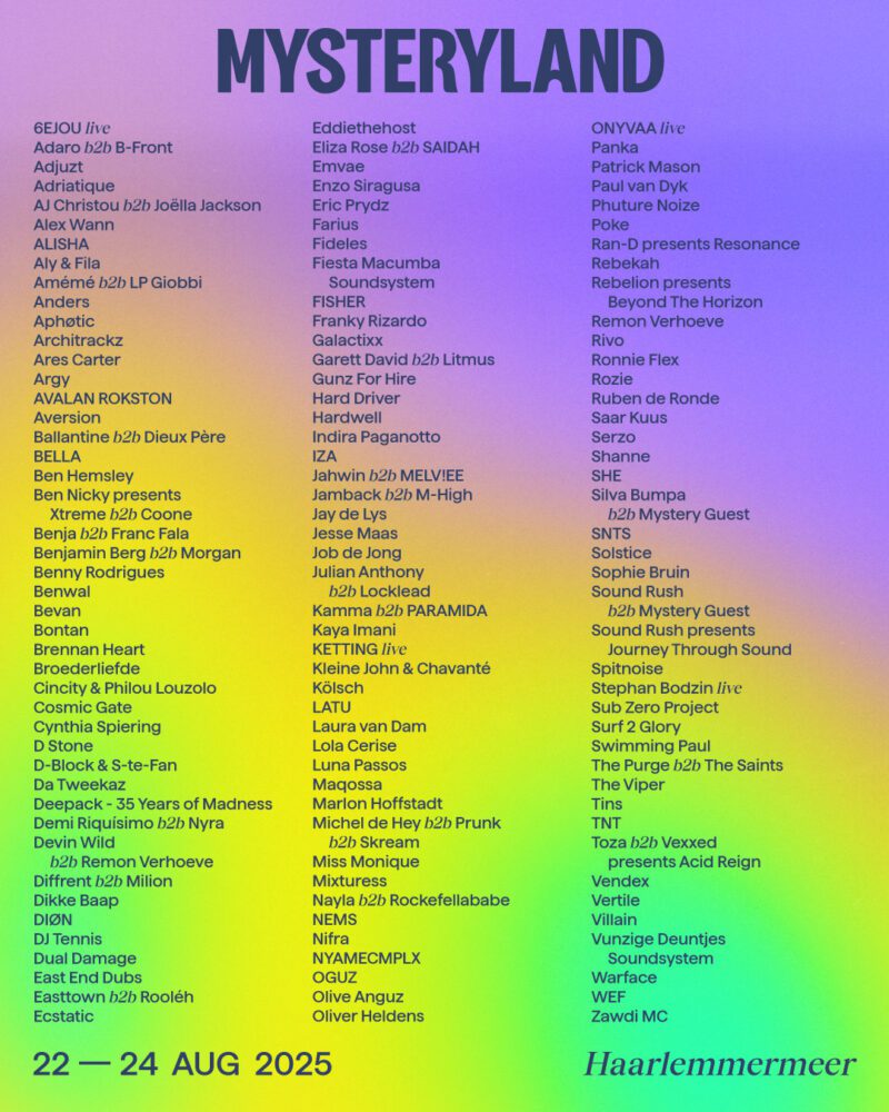 Mysteryland has unveiled the lineup for its 2025 edition, running from Friday, August 22nd through Sunday, August 24th in Haarlemmermeer, just outside Amsterdam.