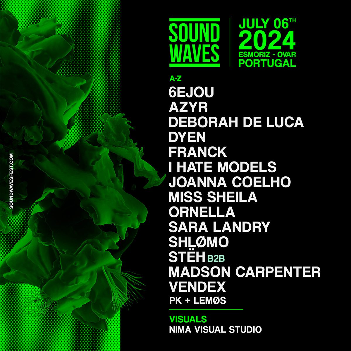 Joanna Coelho, a crowd-pleaser from the Winter and Xmas editions of Sound Waves, will be performing for the first time in Esmoriz. Other performers include Miss Sheila, a well-established figure in the national techno scene, and VENDEX, renowned for his dark rhythms. National artist Ornella will also be delivering an energetic set. Lastly, Brazilian artists Stëh and Madson Carpenter will team up for a b2b set.