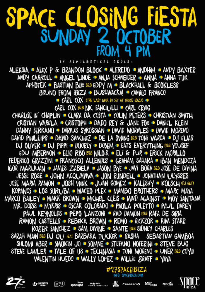 Space Ibiza just announced the complete lineup for their final show to take place on October 2nd, 2016.