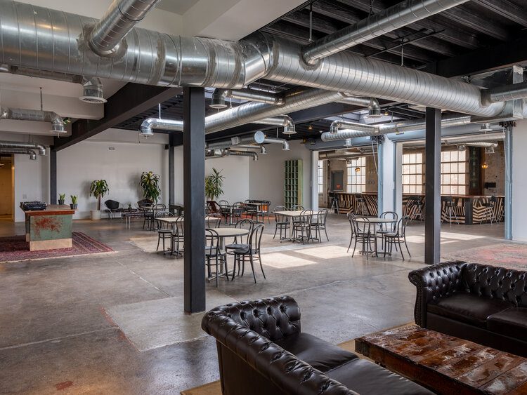A 5,000 square-foot venue featuring a gallery, bar, and live music.