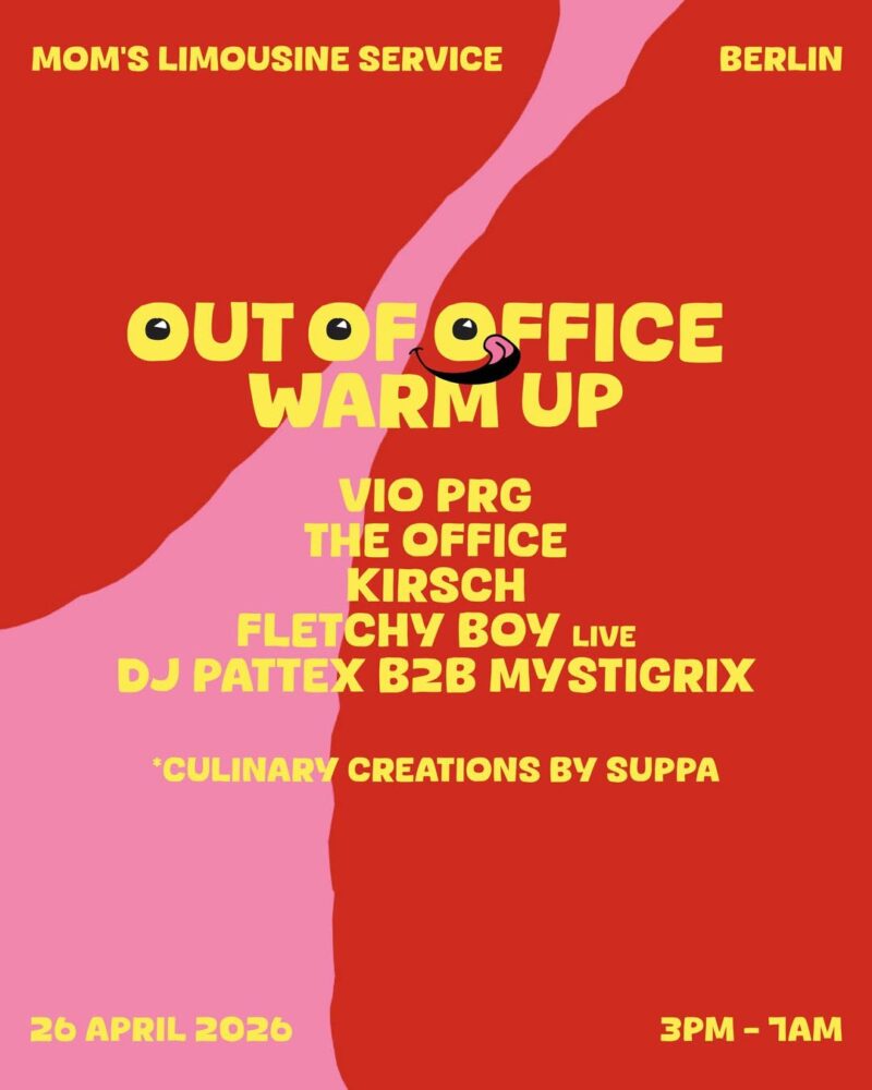 Ahead of the main event, a warm-up party will take place on April 26th at Mom’s Limousine Service in Berlin. The session will feature Vio PRG, The Office, Kirsch, Fletchy Boy (live), and DJ Pattex B2B Mystigrix, alongside culinary contributions by Suppa.