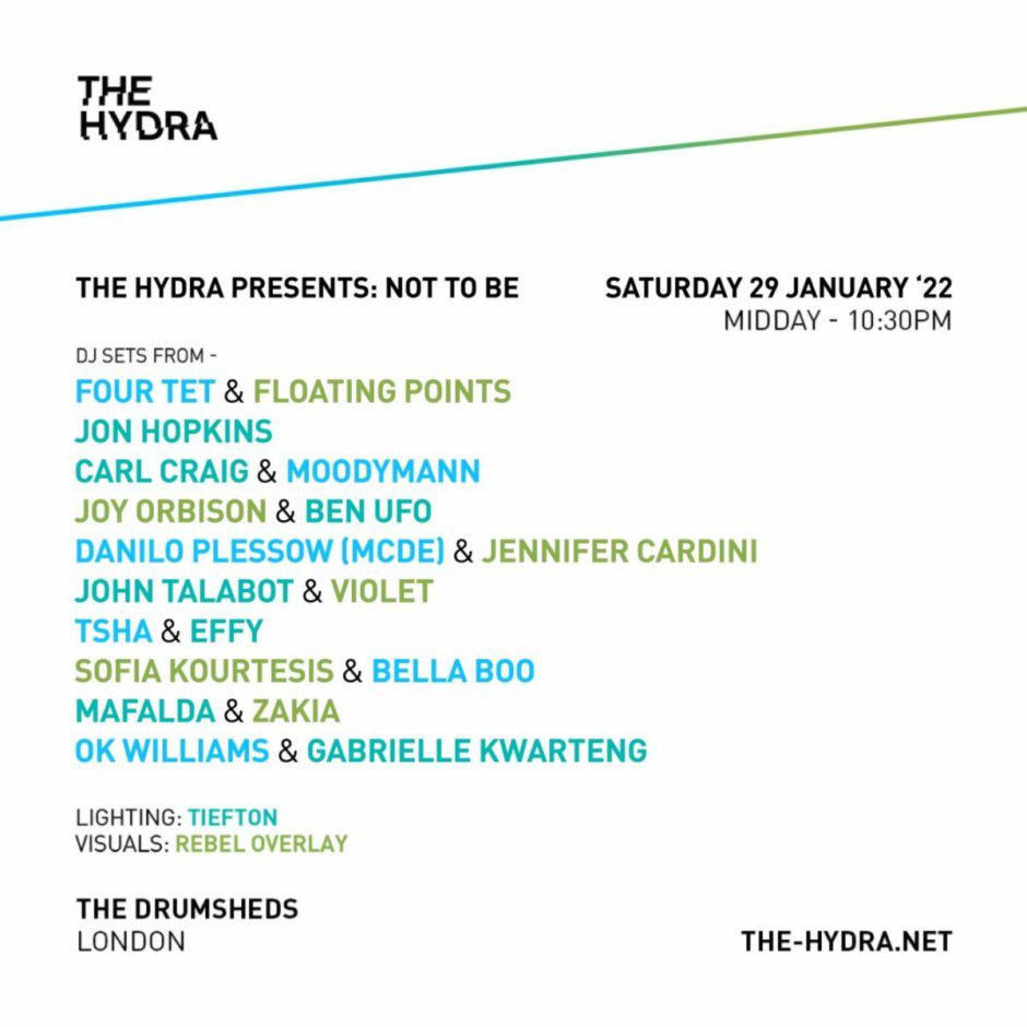 After a tumultuous December 2021 with many music events and gigs postponed or canceled over Covid-19 variant concern – it seems there is a light at the end of the tunnel with more promoters reinstating and rescheduling their events, including the much-anticipated ‘NOT TO BE’ hosted by The Hydra. Originally scheduled for December 18th, 2021, will now be taking place this Saturday, January 29th, at the Enfield warehouse: The Drumsheds.