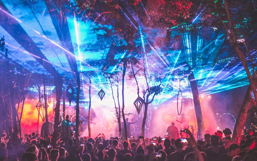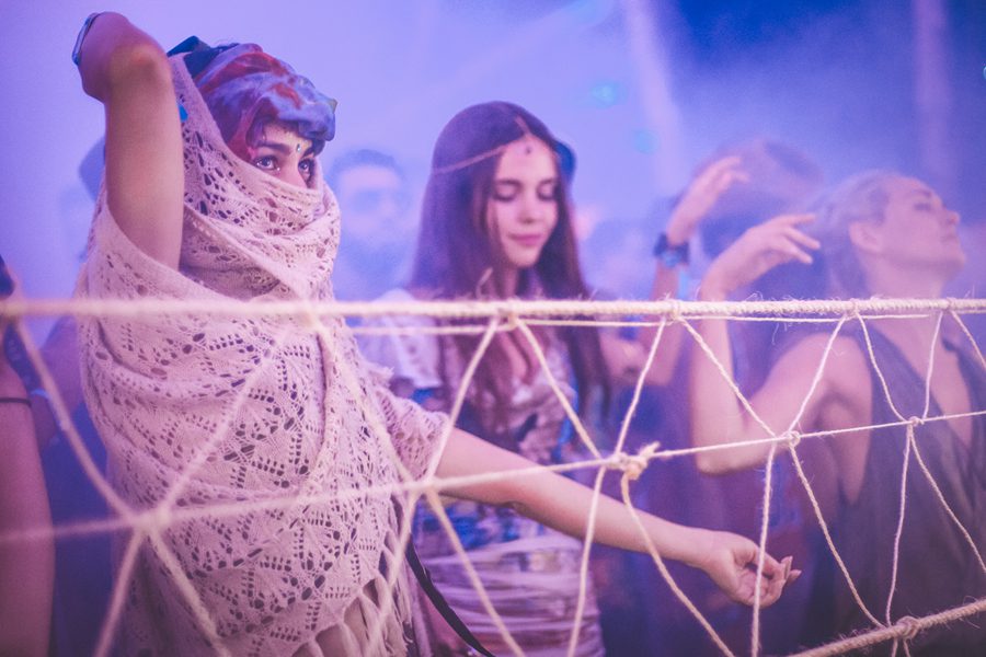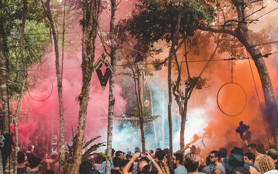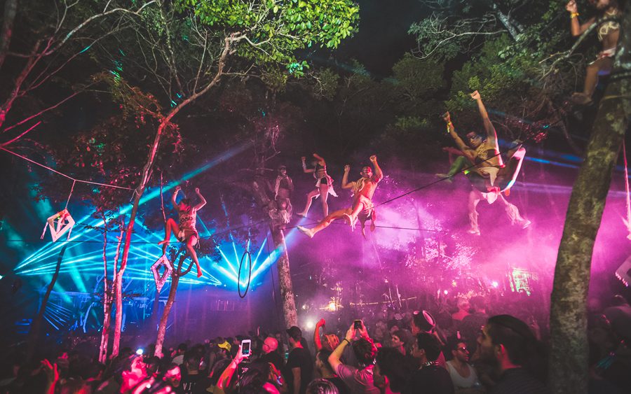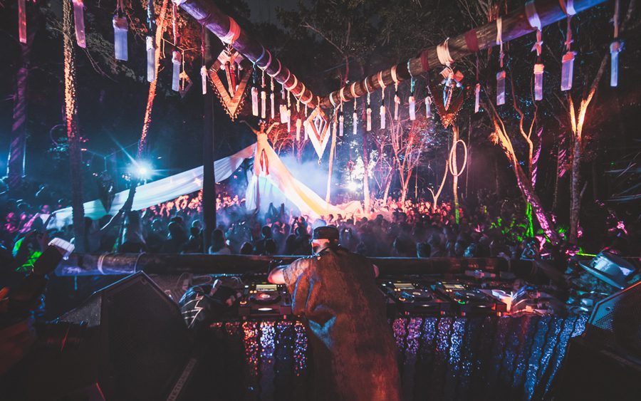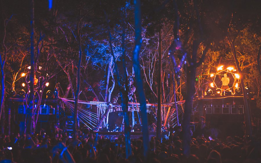 Walking along a 2 kilometers dirt road that led into the jungle, with only the light of a sky full of stars and an impregnated and ominous moon illuminating the way, I felt a nervous yet excited feeling begin to brim up inside of me. I could feel the humid mist from the tropical vegetation whisk against my skin, as a faint cool breeze raised goose bumps all over my body. I paid close attention to the stirrings of the creatures of the night, which began to fade out as alluring sounds of tribal drums mixed in with a dominating bass began to emerge from a distance. I started to feel a little bit like Alice in Wonderland ready and willing to go down the rabbit hole of time and space.